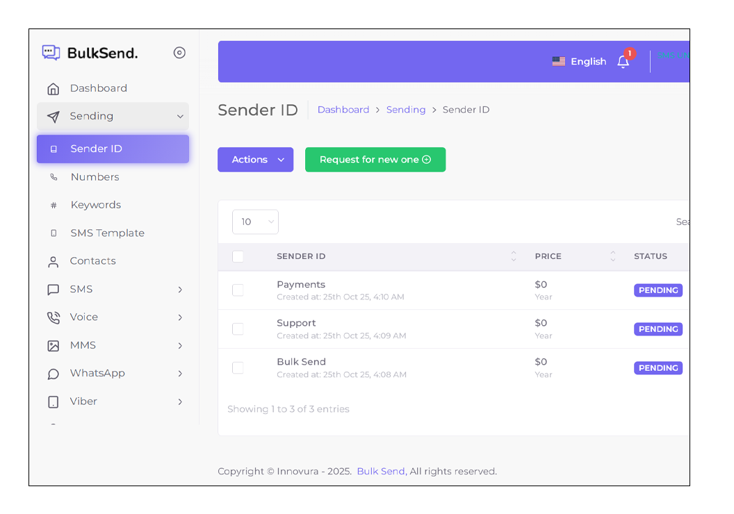 Sender ID Management